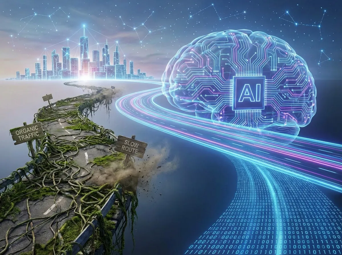 10 de abril de 2026O seu painel do Analytics não está quebrado, ele apenas reflete uma verdade brutal: a era do clique acabou. Bem-vindo à economia Zero-Click, onde os algoritmos vendem por você — ou te apagam da existência.
